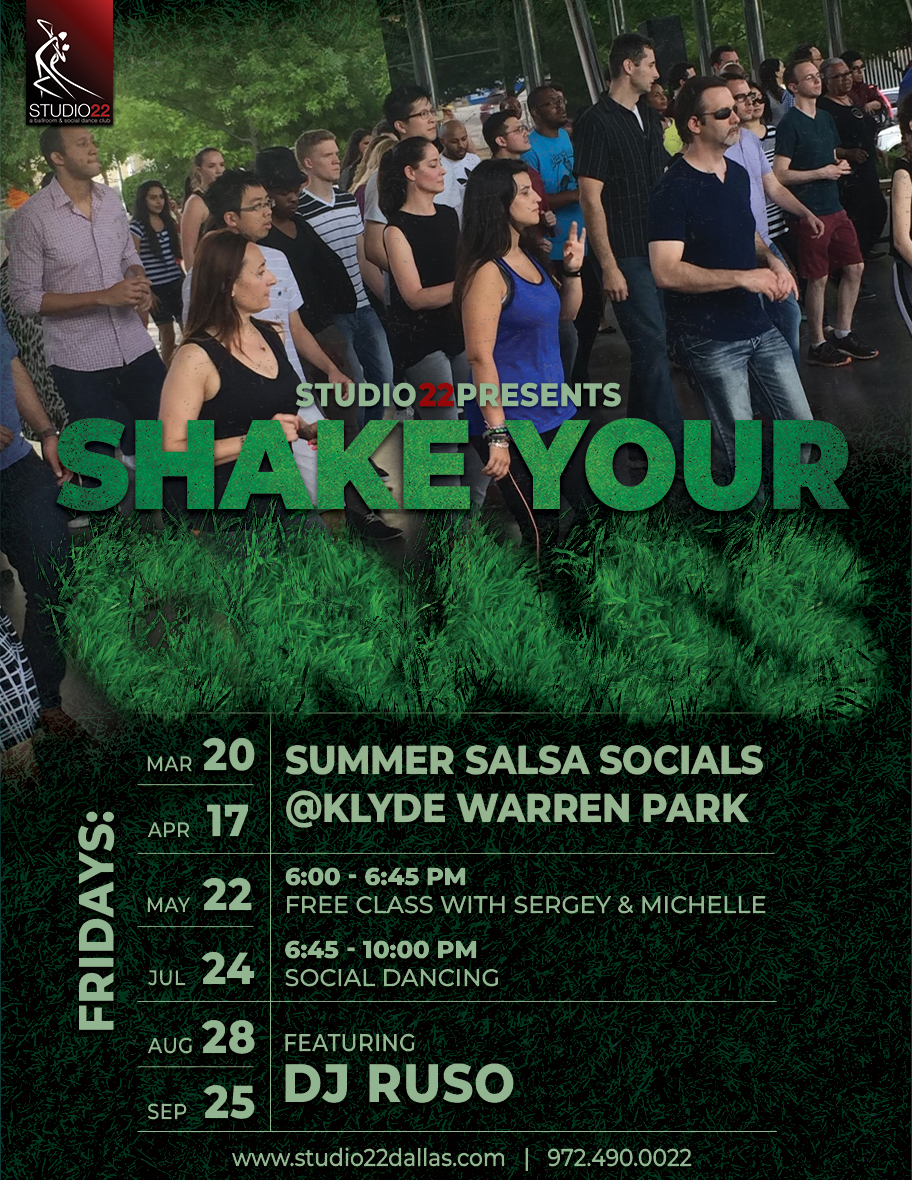 FREE CLASS & SOCIAL DANCING offered by Studio 22 at Dallas's favorite urban green space, @KlydeWarrenPark.